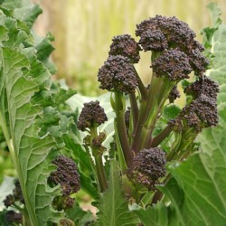 Dit is de originele broccoli, zoals deze al eeuwen geteeld wordt! Waarschijnlijk is deze in de Romeinse tijd binnen Engeland gekomen en is sindsdien vooral langs de zuidkust zeer populair. De plant overwintert en geeft het 2e jaar (in februari tot april ) de eerste oogst van malse bloemstengels (zacht als asperge) met in de top een overvloed aan paarse knoppen. Je kan ze diep in de knop al oogsten, een beetje rijper mag ook.