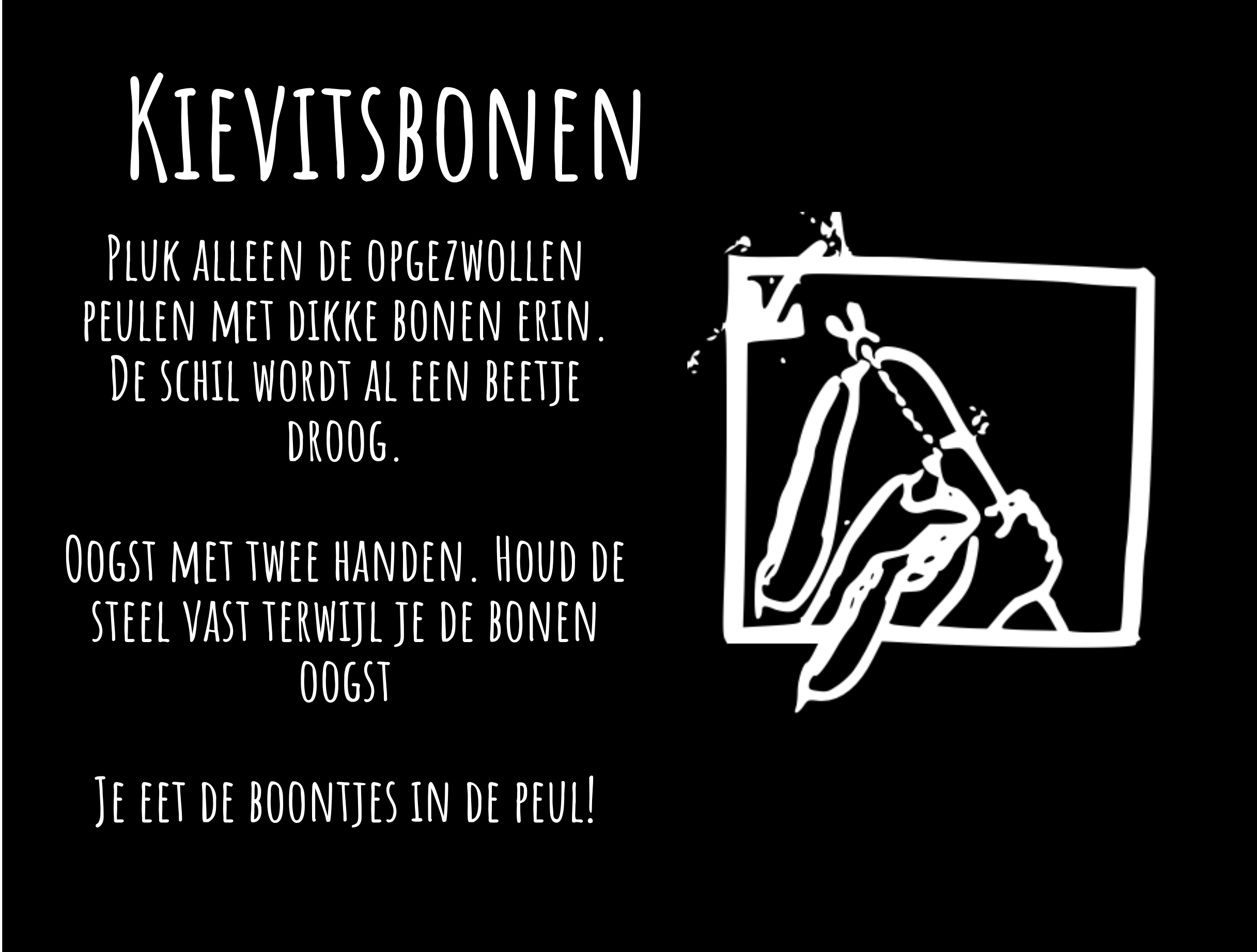 Kievitsbonen zijn prachtig om te zien. Zowel de peulen als de zaadjes zijn roze gevlekt, maar je kunt alleen de zaadjes/boontjes eten. Hun naam danken ze aan het feit dat de boontjes op kievitseitjes lijken. Kievitsbonen zijn zachter van smaak dan bijvoorbeeld bruine bonen. De oogstperiode van de kievitsbonen valt in de maanden september tot en met oktober.
