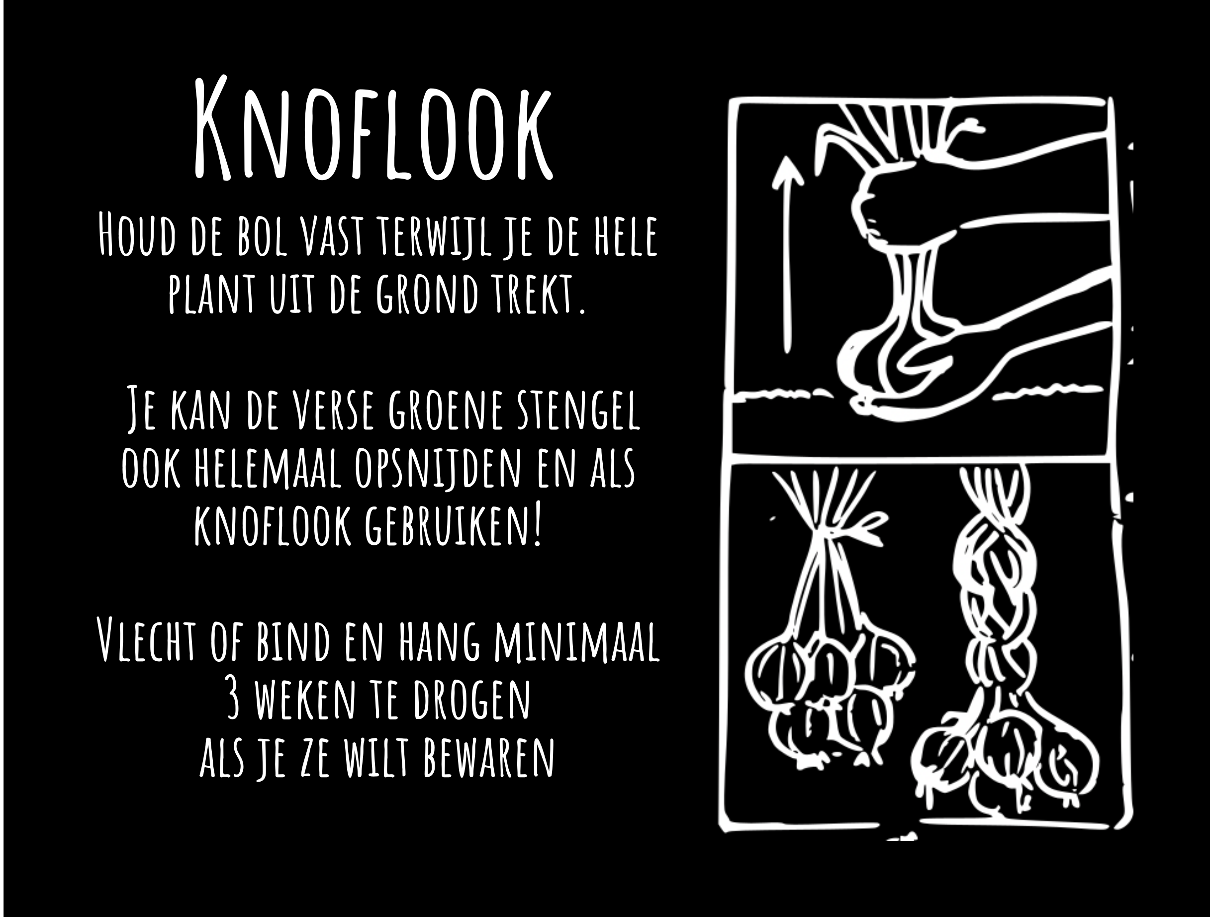 Houd de bol vast terwijl je de hele plant uit de grond trekt. Je kan de verse groene stengel ook helemaal opsnijden en als knoflook gebruiken!